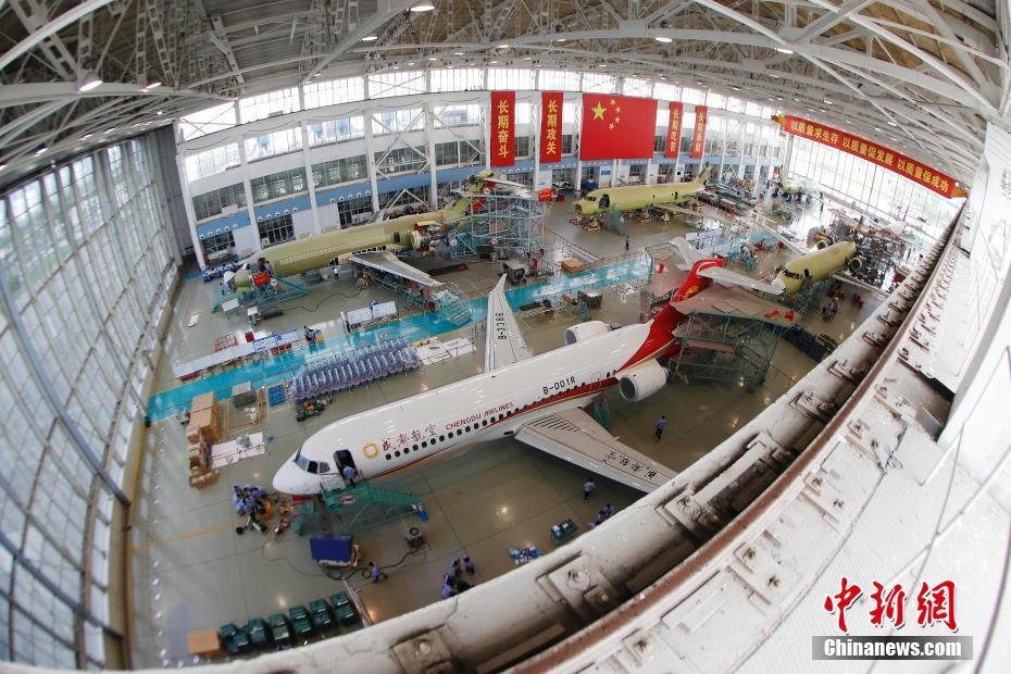 在上海飞机制造公司大场基地,工作人员正在认真的进行总装工作。殷立勤 摄