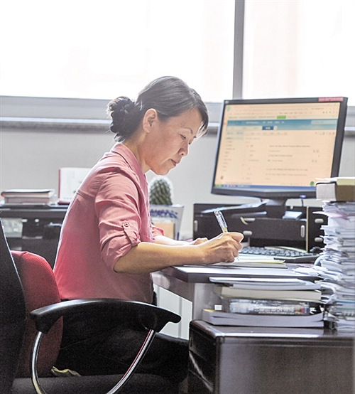 冯翠玲办公室的门总是敞开的,无论教师、学生随时都可进。冯翠玲做了太多的大事、小事、分外事:有的教师思想上有了困惑,去找冯翠玲倾诉;有的教师家庭出了矛盾,去找冯翠玲调解;有的教师实验设备通关不顺,去找冯翠玲协调……在教师们眼里,冯书记就是学院的“组织代表”。