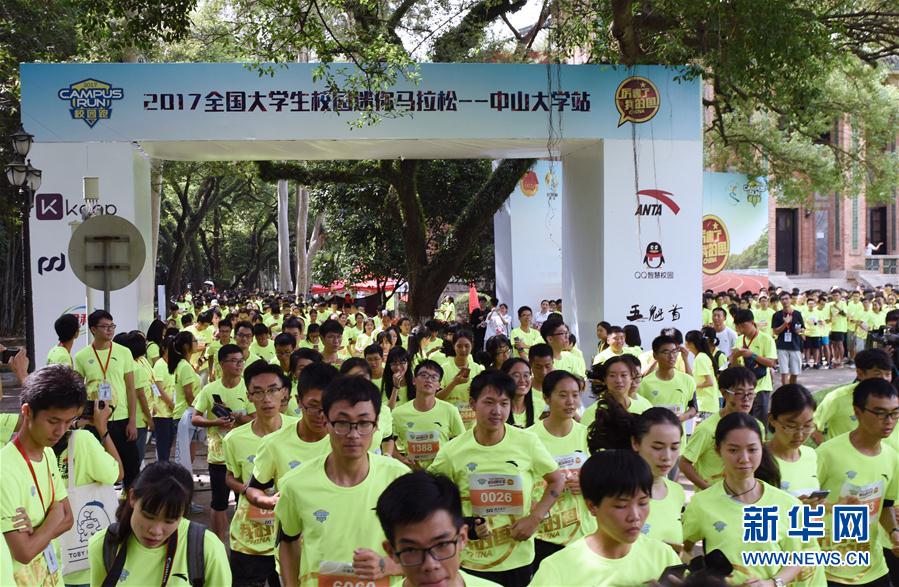 10月1日,中山大学学生在参加主题校园跑活动。当日,“厉害了我的国”2017全国大学生校园跑步季中山大学站在中山大学南校区开跑,共有1000多名学生参加。新华社记者卢汉欣摄