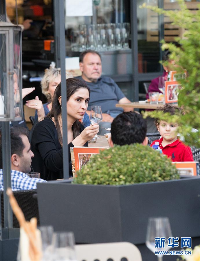 9月27日,在瑞士卢加诺,人们在市中心一家餐馆等待用餐。