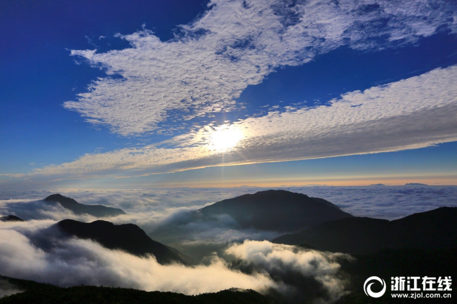 10月6日,国庆长假第六天,登上丽水龙泉黄茅尖山顶,拍摄云海日出,风景美如画。(浙江在线拍友 周耀辉 摄)