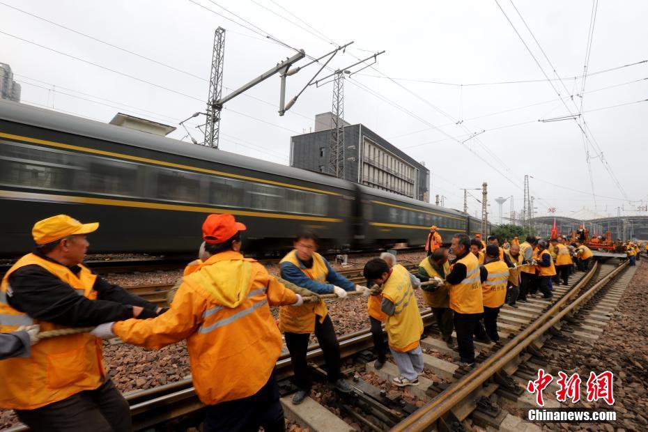 直击郑州火车站换木枕“大手术” 将影响千余列车 ( / 8)