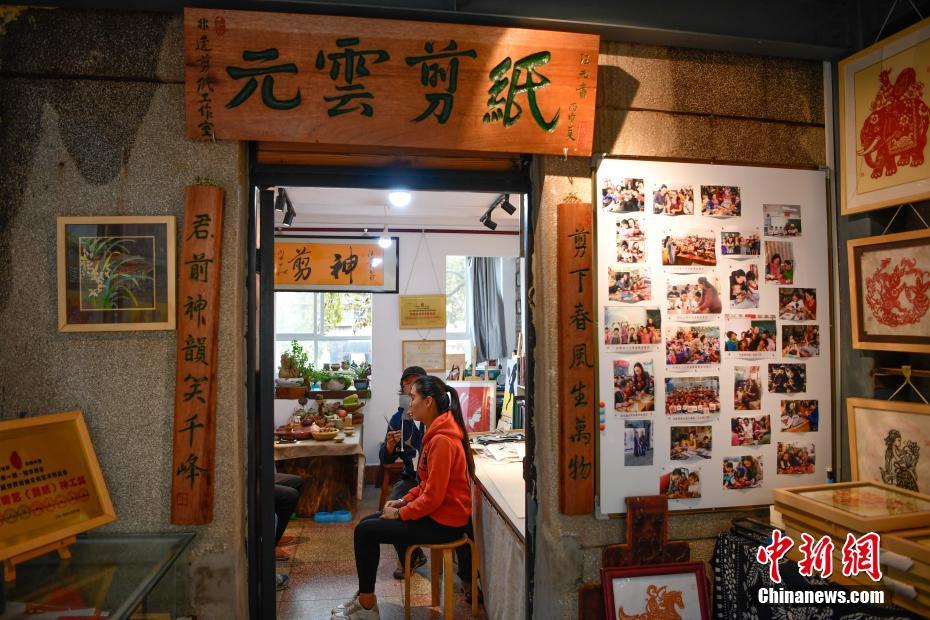 10月12日,汪元在昆明的工作室。汪元是云南省著名剪纸艺术家,也是昆明市非物质文化遗产传承人。普通的剪刀在汪元手中就成了作画的“笔”,经他妙手加工后,一张黑色的纸就变成栩栩如生的人像剪影。汪元从开始剪纸到现在已有近三十年,几乎每天都在练习没停过,他觉得最开心的事就是自己的剪纸作品得到大家的喜欢和认可。汪元说,现在年轻人喜欢剪纸艺术的比较少,所以自己经常会参加一些活动,让更多的人了解、喜欢剪纸,特别是孩子们,觉得从他们传承是最好。中新社记者刘冉阳 摄