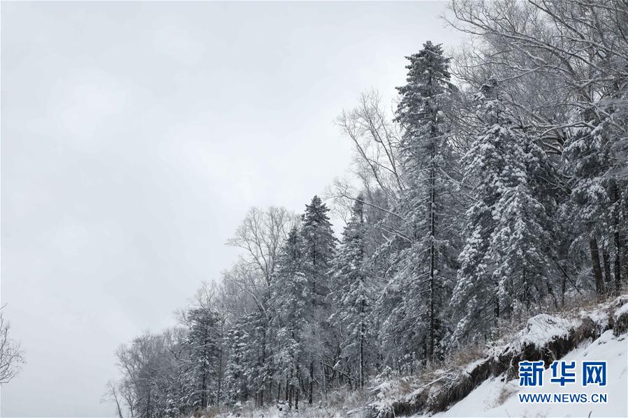 10月12日,位于黑龙江省牡丹江市的十里冰雪画廊被降雪覆盖,呈现出水墨画一般的雪后美景。新华社记者 王松 摄