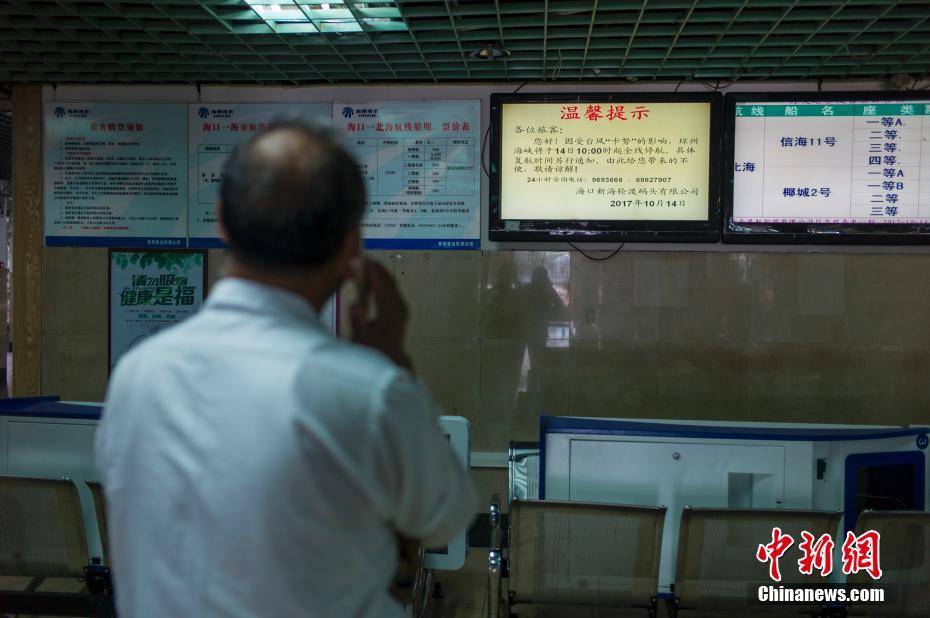 10月14日,海口港客运站售票大厅一位旅客正在阅读停航信息。受今年第20号台风“卡努”影响,14日夜间起,琼州海峡风力增大,为保障航行安全,海南海事部门决定从14日10时起,琼州海峡全线停航,同时粤海铁路跨海旅客列车全部停运。海南省气象局也在13日14时50分变更台风四级预警为台风三级预警,提醒相关部门做好防范。 中新社记者 骆云飞 摄