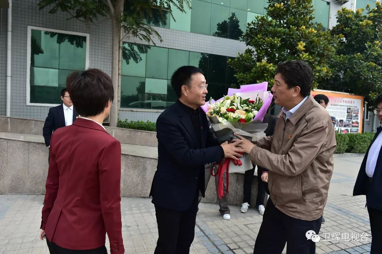 在党的十九大即将召开之际,2017年10月14日上午,河南卫辉市委书记梁常运,市长范士富,副市长王明辉一行来到春江水泥有限公司实地调研,慰问十九大代表、春江集团党委书记裴春亮同志,并将鲜花送到了裴春亮手中。