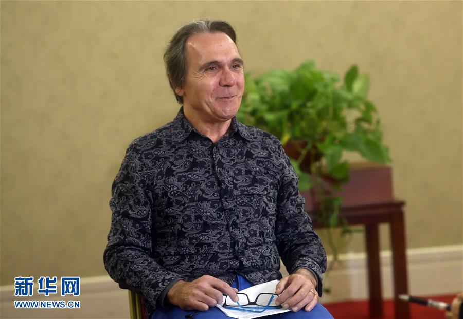 这是西班牙文专家何力鸥在北京接受采访(10月14日摄)。新华社记者 金良快 摄