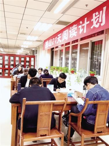 百余本书、21天、每晚6点到10点、阅读总时长至少80小时……郑州大学图书馆举办的首届“挑战21天阅读计划”活动,在校园内掀起读书热浪,50名郑大学子投入到一场阅读的狂欢中。
