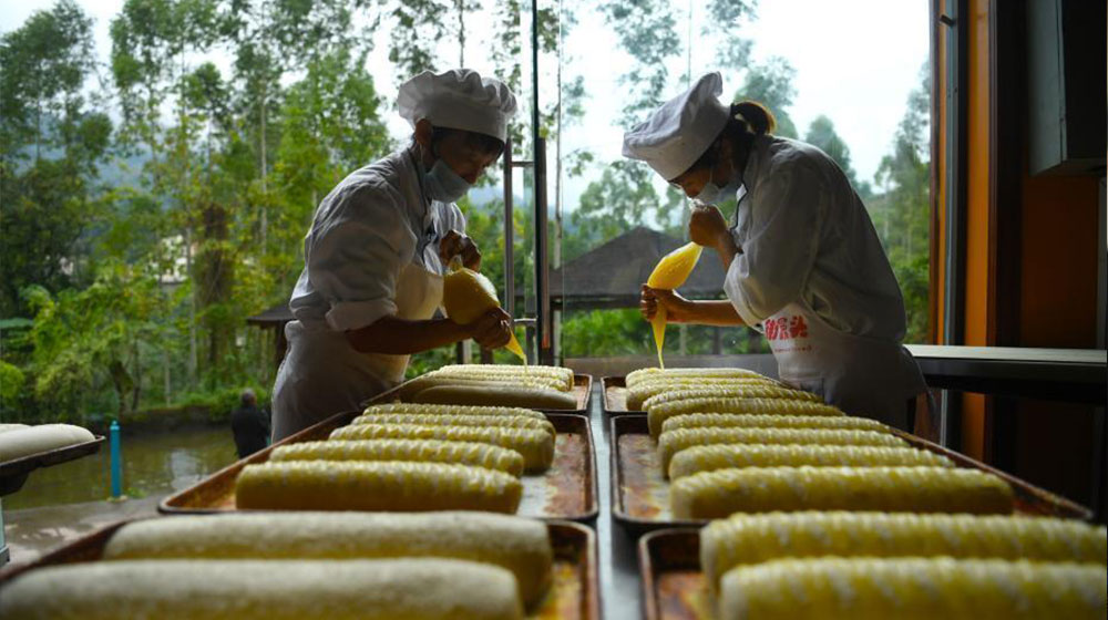 馒头加工点内工作人员正在忙碌工作。陈超 摄