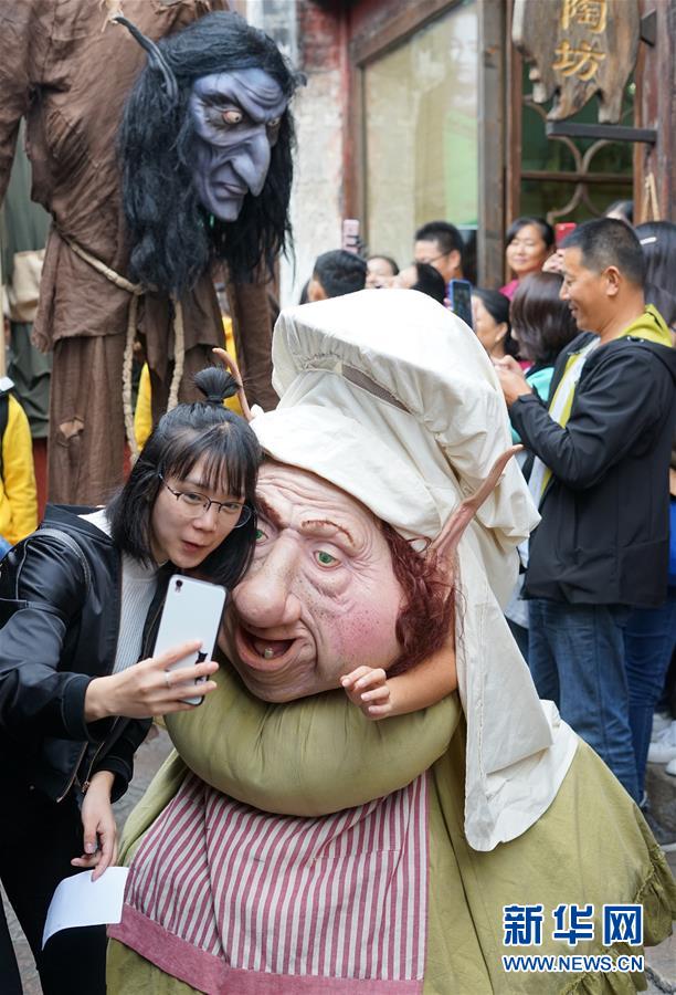 10月19日,为期11天的第五届乌镇戏剧节在浙江乌镇西栅拉开序幕。除了专业剧场内的演出,在乌镇西栅的木屋、石桥、街巷甚至摇橹船上,随处可见来自国内外艺术团体带来的表演。新华社记者 许舜达 摄