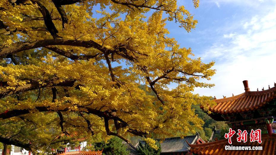 文殊寺内的古银杏树枝干交错、树冠连为一体,似孔雀开屏。韩章云摄