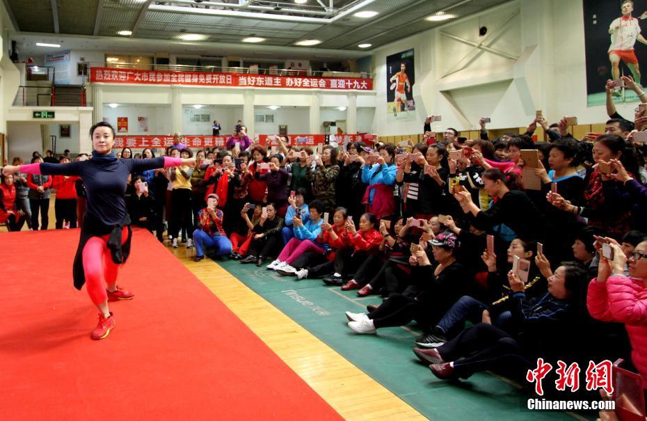10月23日,天津市第三套市民广播体操推广培训会在天津全民健身活动中心举办。此套市民广播体操是在广泛征求意见,吸取前两套广播体操优点基础上,由天津市体育局发起,宝力豪健身统筹编制,天津市全民健身活动中心、天津市社会体育指导员协会提供相关支持共同完成创编,适合各类人群开展体育锻炼。图为天津市民围观教练示范动作。中新社记者 张道正 摄