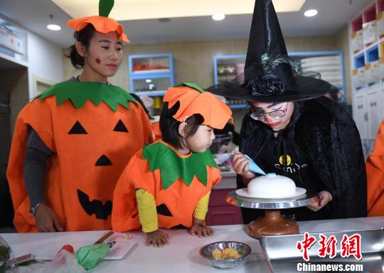 市民身穿南瓜服装制作糕点 张瑶 摄