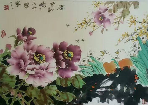 时卫民之牡丹,用色清丽不俗,于淡雅中显现雍容华贵之神韵,形神兼备,生机盎然,千姿百态,惹人喜爱。有的临风怒放,生机勃勃;有的迎日绽放,娇美争奇、意态祥和;有的暗香浮动,惹得蜂蝶蹁跹;有的凌霜傲雪,红装素裹。曲尽四季牡丹之风韵、神彩。欣赏他的牡丹画,好像真的闻到了牡丹花的芳香!