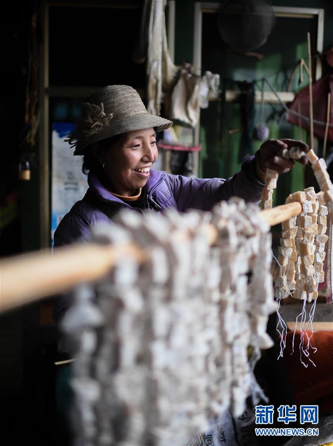 10月29日,卓嘎在家中晒奶渣。
