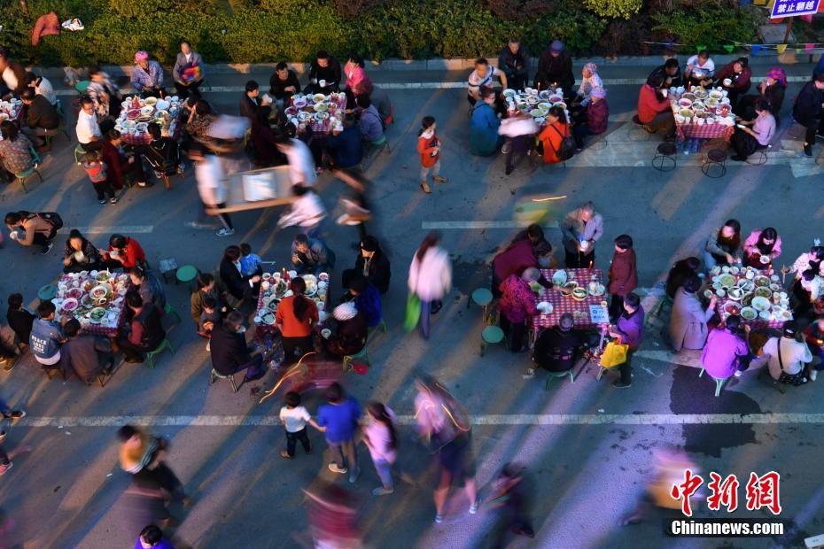 昆明东川摆188桌“烛光长街宴”为老人送祝福