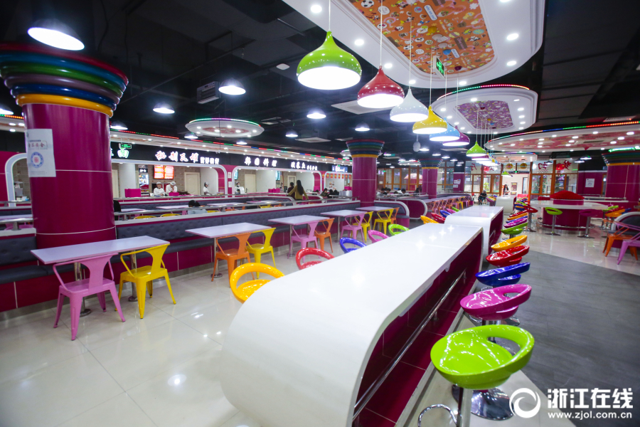 10月27日,记者在浙江树人大学杨汛桥校区一睹高颜值“梦幻餐厅”的风采,靓丽的装饰无不透露着青春的气息。在这里有特色的点歌台,学生可以依据个人喜好点播歌曲,让用餐成为一种享受。除了高颜值,在“梦幻餐厅”还能品尝到具有各个地方特色的地道菜,身在校园就能吃遍各地美食。记者 张孙超 阮西内 摄图片来源:浙江在线