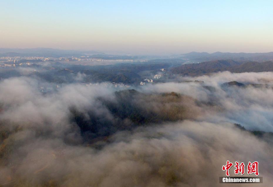 航拍"最美乡村"江西婺源 深秋流雾美如画境