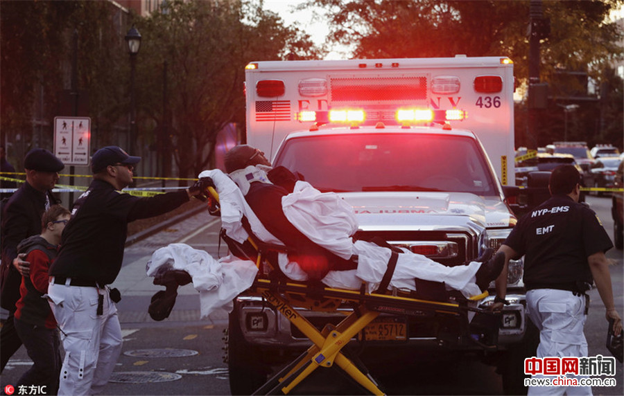 中国网新闻11月1日讯 当地时间2017年10月31日,美国纽约,纽约曼哈顿下城当天发生卡车撞人恐怖袭击事件,这起事件为一起“独狼式”恐怖袭击事件,目前已致8人死亡。