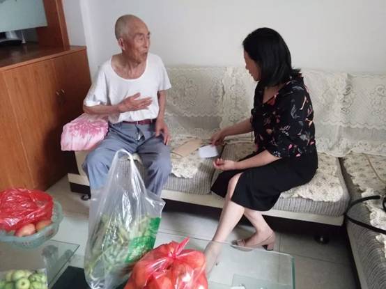 (唐闸镇街道长岸社区工作人员看望贫困老党员)