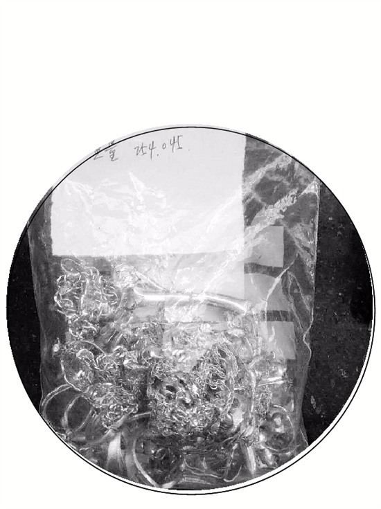 “当时真的惊呆了!”倪新国回忆,拆开快递先是一个茶叶盒,一层层翻开来,里面竟然是一包黄金,“金灿灿的首饰,里面的小纸条上还写着‘254余克’的字样,毛估估也值7万多元。”