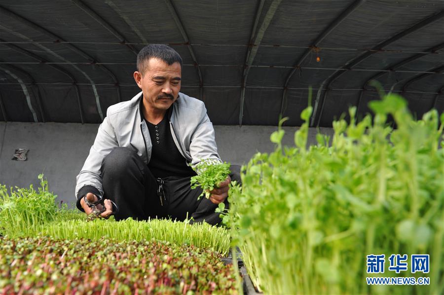 11月4日,河北省黄骅市常郭镇中排村芽菜种植基地的菜农在收割豆芽。近年来,河北省黄骅市常郭镇在调整产业结构过程中,采取“公司 合作社农户”经营管理模式,引导农民因地制宜发展萝卜、食用菌、金银花等特色种植业。目前,常郭镇成立特色种植合作社20家,特色农作物种植面积1.7万亩,年产值超过4500万元。新华社记者 牟宇 摄