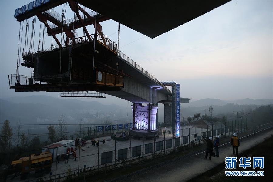当日,位于湖北十堰丹江口市丁家营镇境内的汉十高铁丁家营跨襄渝铁路特大桥44号墩、45号墩、46号墩连续梁分别逆时针转动,在空中实现精准对接。该特大桥全长1638米,其跨越襄渝铁路施工段采取“先建后转”方式,确保铁路运营安全畅通。