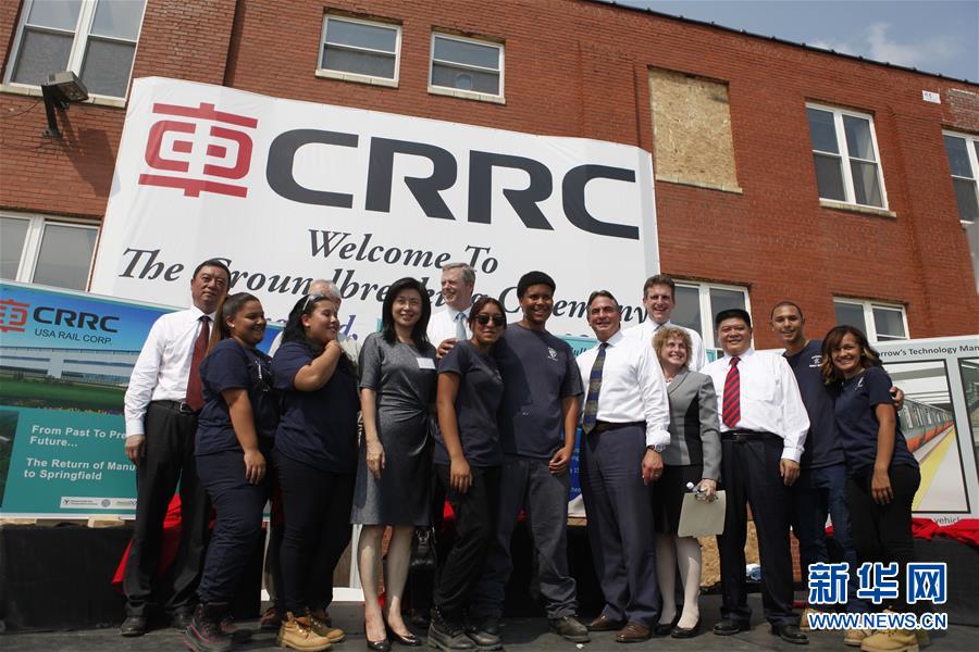 2015年9月3日,在美国马萨诸塞州斯普林菲尔德市,出席中国中车股份有限公司在美制造基地奠基仪式的嘉宾合影。中国中车股份有限公司在美国马萨诸塞州斯普林菲尔德投资兴建的制造基地是中国高铁企业在美国设立的第一个制造基地。这个制造基地代表了目前中国高端装备制造企业国际产能合作的领先水平。中车斯普林菲尔德工厂预计将于2018年投产,首批生产的284辆地铁车厢将于2023年年底之前替换已经服役三四十年的波士顿红线和橙线地铁车厢。新华社记者刘劼摄