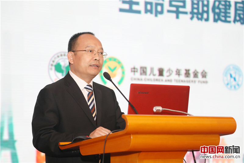 中国儿童少年基金会秘书长朱锡生介绍“生命早期健康基金” 。