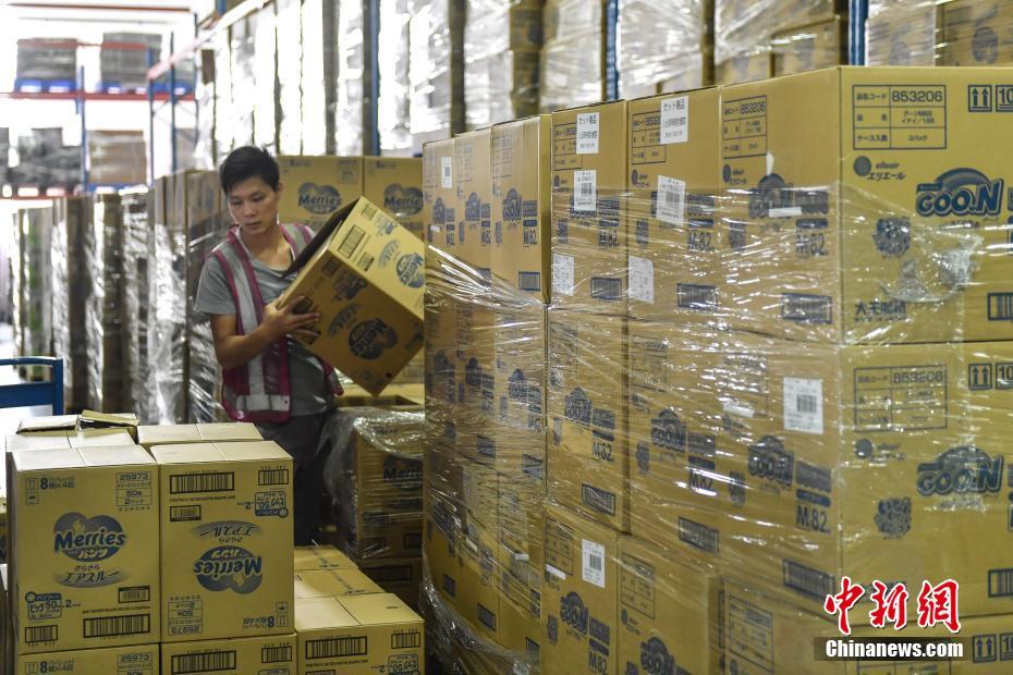 11月12日,广州南沙保税仓内,员工正在分拣货物。据广州海关统计,“双十一”全天,广州海关共审核(验放)255.4万票跨境电商货物电子清单,是去年同期3倍;货值6.3亿元人民币,是去年同期的3.8倍。验放的商品主要品类是护肤品,婴幼儿奶粉,食品,婴幼儿纸尿裤,化妆品等。中新社记者 陈骥旻 摄