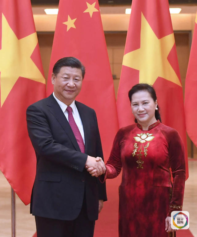 11月12日,中共中央总书记、国家主席习近平在河内会见越南国会主席阮氏金银。新华社记者张铎摄