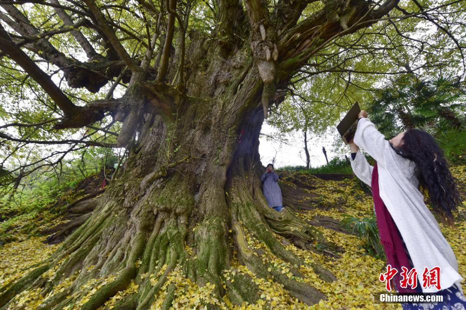 “早就听说这棵银杏树了,今天终于目睹了它的真容,特别开心!”来自泸州的游客牟女士为了享受大自然的恩赐,感受天地之灵性,专门带了茶具,在树下沏茶品茗,享受大自然的美景。