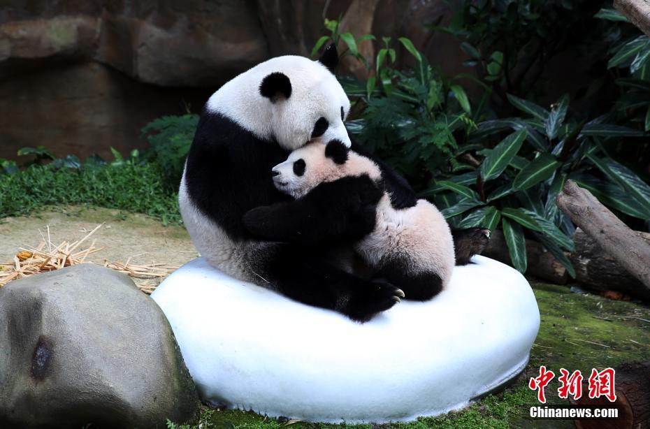 大熊猫“暖暖”和母亲在一起。钟欣 摄