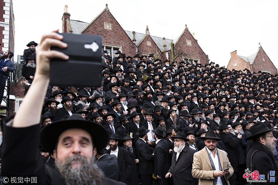 当地时间2017年11月19日,美国纽约,4600名拉比(Rabbis,是对有学识的犹太男子的尊称),聚集在查巴德·卢巴维奇全球总部参加查巴德·卢巴维奇大使国际会议(International Conference of Chabad-Lubavitch Emissaries)时,拍下了这张规模壮大的集体照。他们是来自90个国家的社区领袖,有些甚至是从曼谷和肯尼亚赶去纽约。图片来源:视觉中国