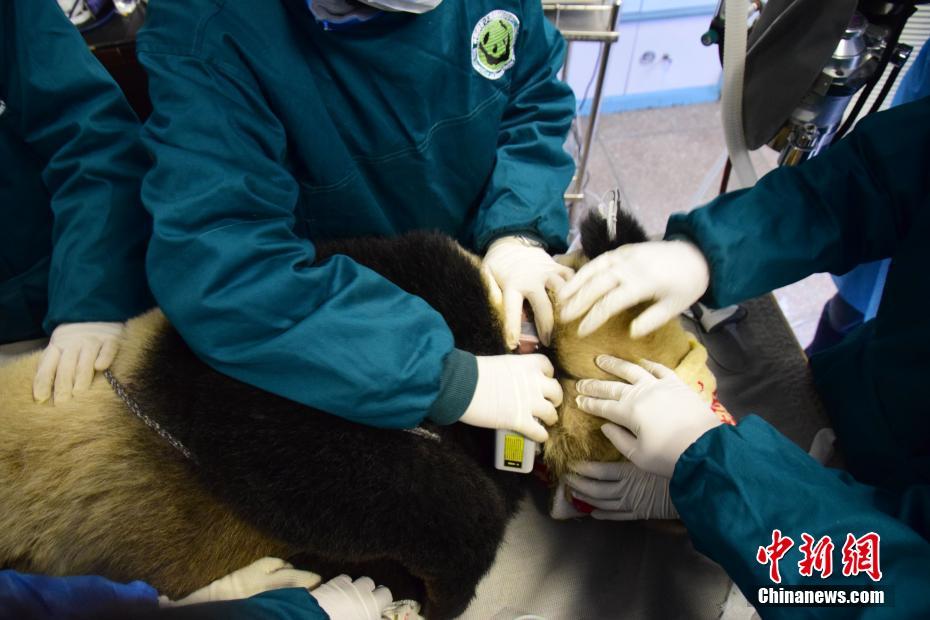 为大熊猫“映雪”佩戴GPS项圈。李传有 摄