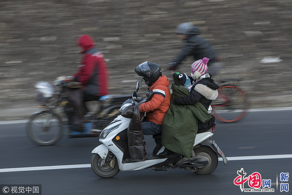 2017年11月22日,北京昌平,当日正值农历小雪节气,又逢大风天气,体感寒凉,民众出行时纷纷“全副武装”抵御寒风侵袭。视觉中国
