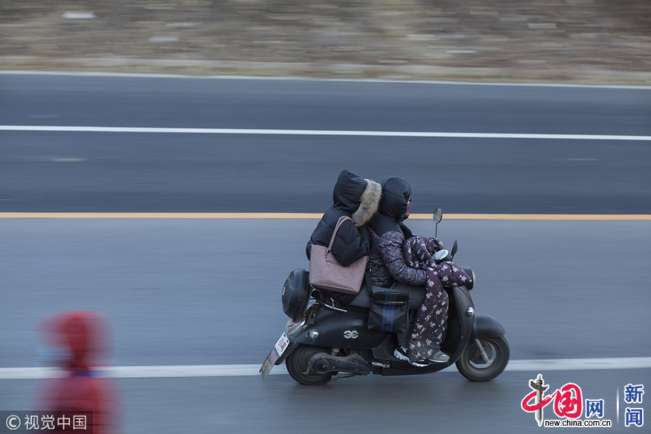 2017年11月22日,北京昌平,当日正值农历小雪节气,又逢大风天气,体感寒凉,民众出行时纷纷“全副武装”抵御寒风侵袭。视觉中国