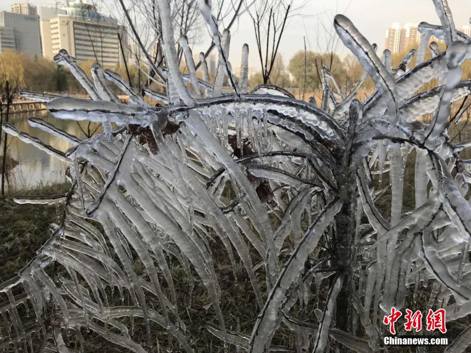 甘肃兰州小雪时节现冰挂景观