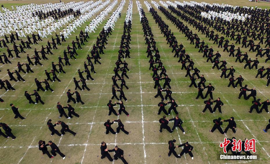 2000余名太极拳爱好者身穿黑白两色衣服,组成太极图案共舞太极。刘占昆 摄