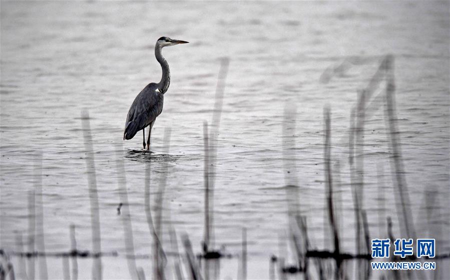 11月29日,一只候鸟在江西鄱阳湖南矶湿地国家级自然保护区休息。