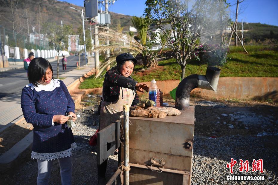 龙头山镇街头卖小吃的商贩。 中新社记者 刘冉阳 摄