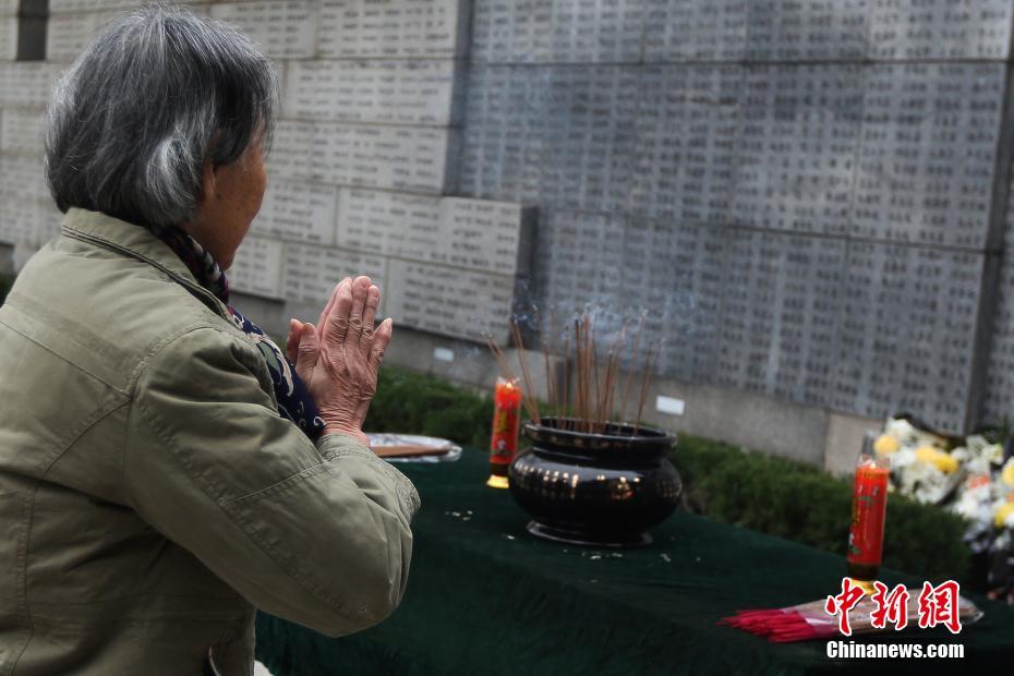 南京大屠杀遇难者家属“哭墙”前祭亲人 ( / 8)