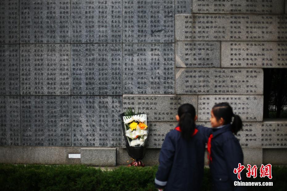 南京大屠杀遇难者家属“哭墙”前祭亲人 ( / 8)