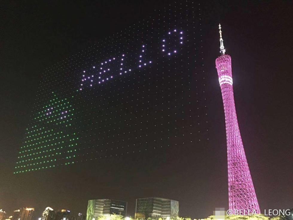 12月7日晚,广州。在《祝酒歌》合唱歌声中,1180架无人机编队从海心沙飞起,亮灯形成“财富”两个汉字,现场市民齐齐仰头观看。此次无人机编队利用“科技舞蹈”,表达对2017广州某论坛的欢迎,给出席论坛的嘉宾带来惊喜。
