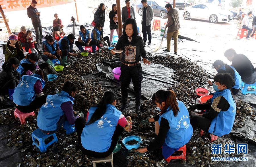 南珠再起航这是北海市铁山港区旺海珍珠养殖场珠农在集体收取马氏珠母贝体内的珍珠(12月7日摄)。