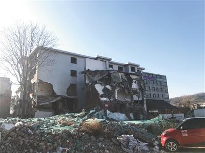 新京报记者近日在东大街看到,不少拆了一半的房屋临街而立,楼房的水泥钢筋裸露在外,耸立在半空中。楼前的电线杂乱地交织在一起,屋后垃圾成堆,一副破败的景象。