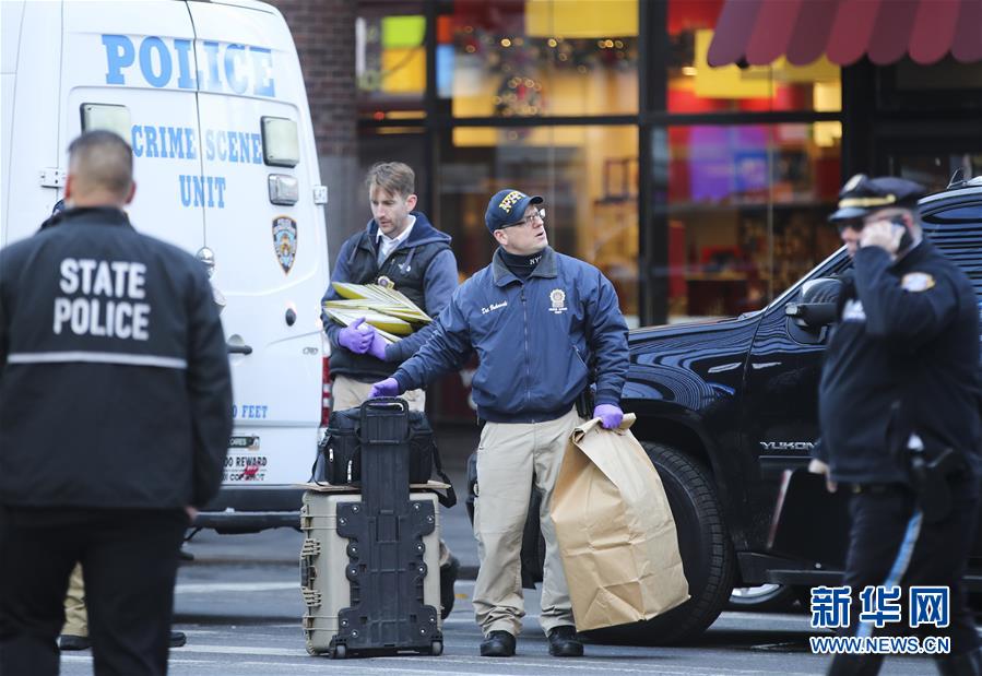 12月11日,在美国纽约市曼哈顿,调查人员在爆炸现场附近工作。
