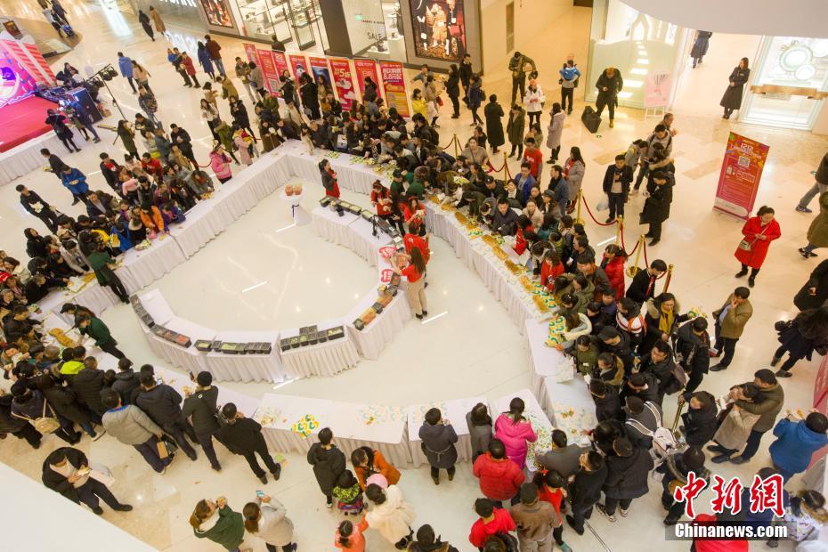 12月12日,山西太原,民众在抢吃超长三明治。当日正值一年一度的“双十二”,山西太原某商场现场制作33米长的三明治让民众品尝,活动现场人气爆棚,引来大量民众疯狂抢吃。中新社记者张云 摄