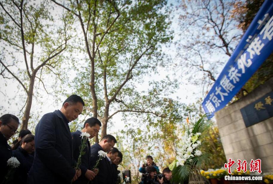 12月13日,南京民众在侵华日军南京大屠杀遇难同胞北极阁丛葬地悼念遇难同胞。当日,南京大屠杀死难者国家公祭仪式在侵华日军南京大屠杀遇难同胞纪念馆内举行,祭奠30万遇难同胞。中新社记者 泱波 摄