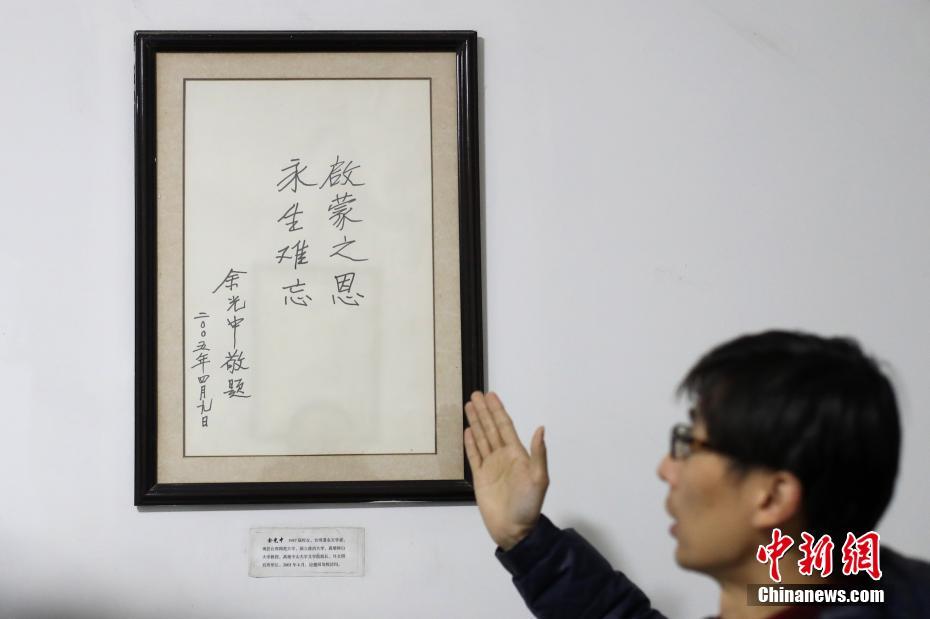 12月14日,余光中母校南京五中的老师介绍余光中的亲笔留言。当日,著名诗人、作家余光中于台湾高雄病逝,享年89岁。中新社记者 泱波摄